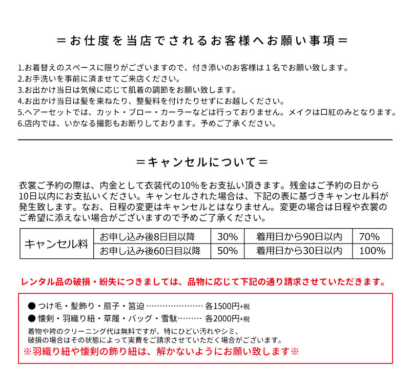 【お支度代】着付け:4,400円 / ヘアセット:3,300円